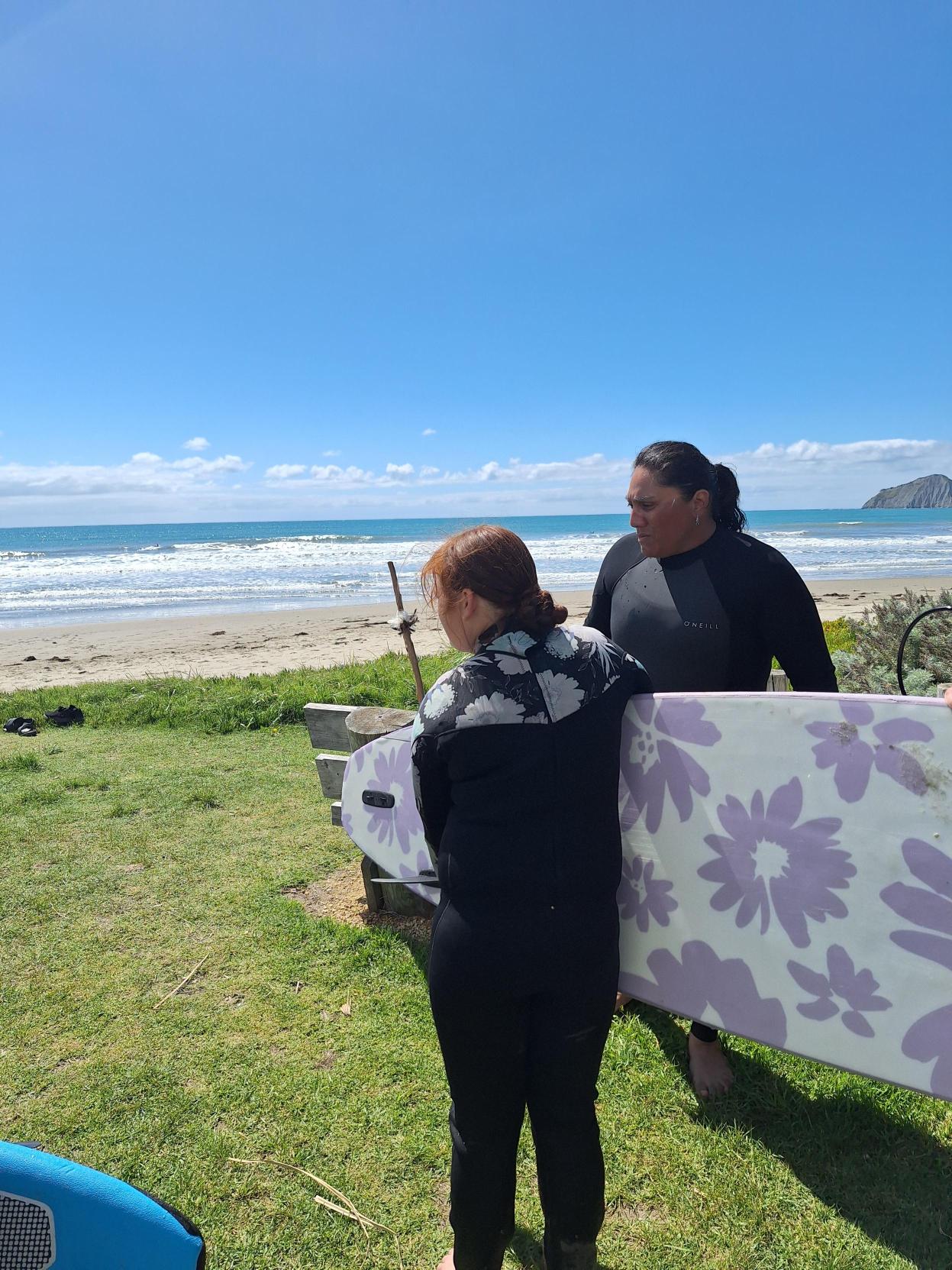 A big focus of the sessions was strengthening taha tinana (physical wellbeing) while connecting with taha whenua through the moana. Sunshine, clean waves, and plenty of banter made it an unforgettable experience.
